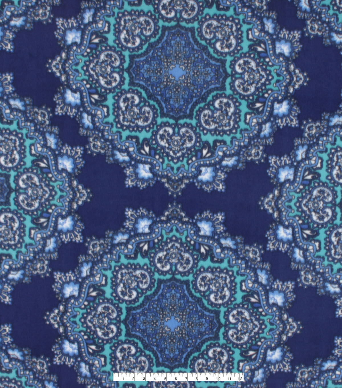 Blue Medallions Anti Pill Fleece Fabric