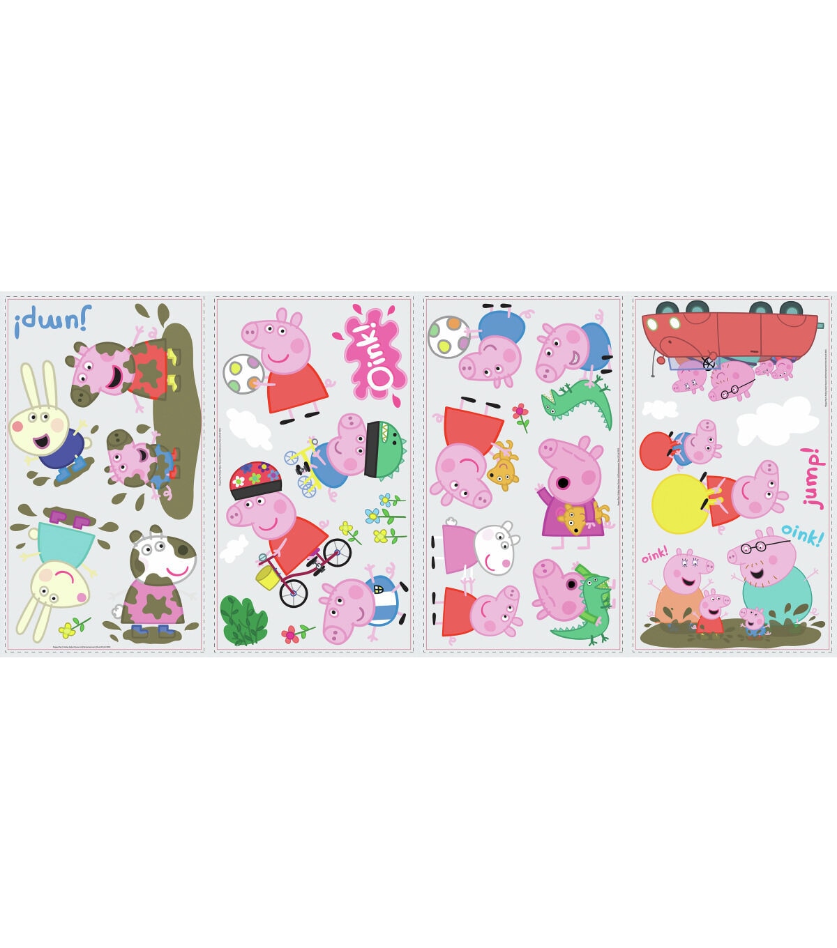 Bring the fun-filled adventures from Peppa Pig to the walls of your childes room with these Peppa Pig Wall Decals! A great way to create your childes favorite scenes from the hit series on their walls, apply these wall decals to any flat surface in minutes! Easy to remove and reposition, purchase yours today!