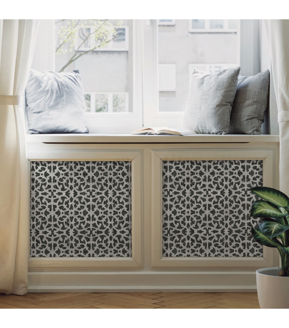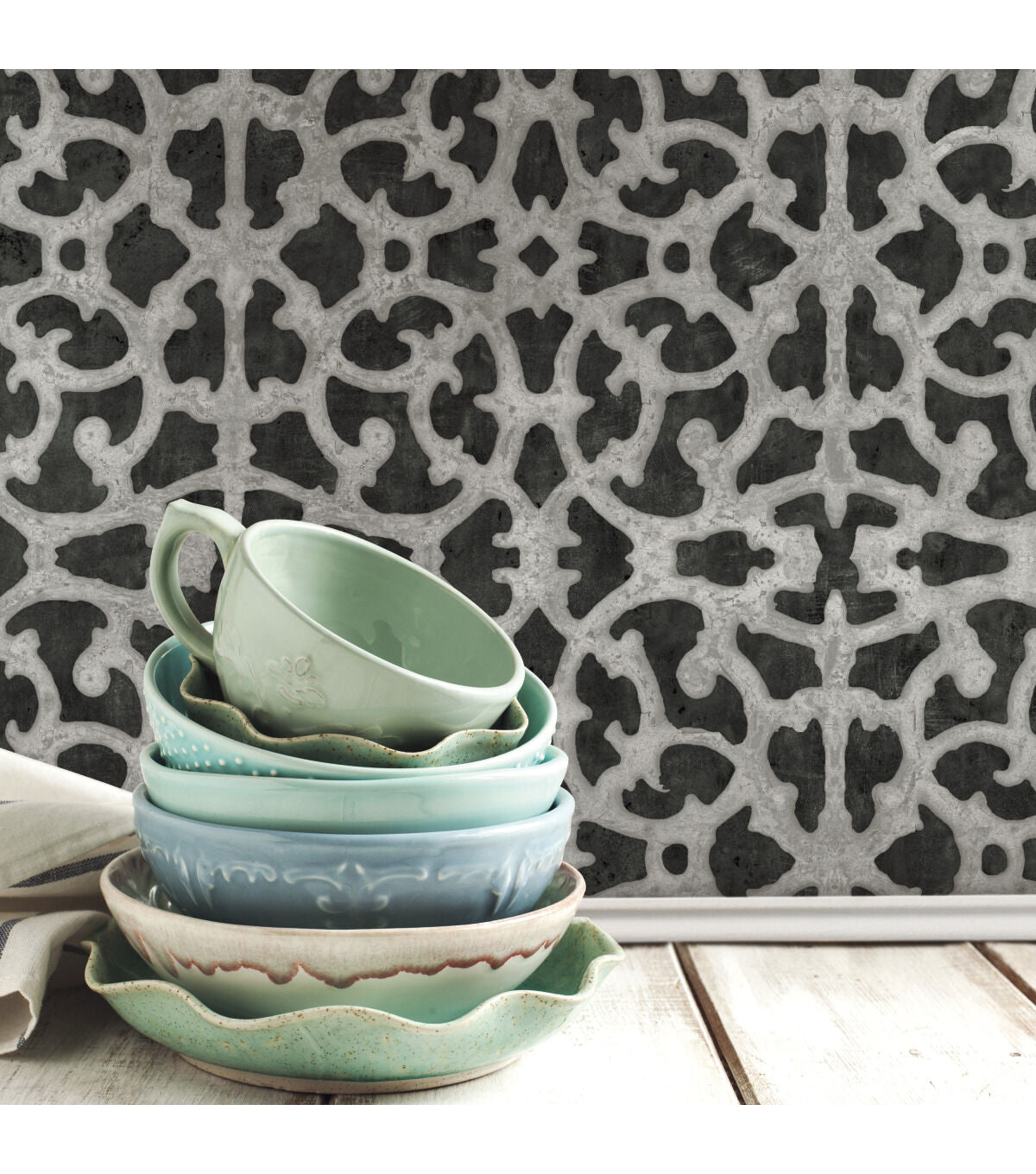 Customize any space or décor with Black and White Scroll Gate Peel & Stick Wallpaper by RoomMates. Offering a fresh new alternative to decorating with very little commitment, use Peel and Stick Wallpaper for more than just walls. Great for upgrading walls, furniture DIY crafts, décor and more, the decorating possibilities are endless. A fast, fun and affordable decorating tool, install Peel and Stick Wallpaper in minutes. Just peel and stick! Plus, remove in full strips in just seconds keeping walls 100% safe. Reusable and extremely versatile, shop Peel and Stick Wallpaper now!
