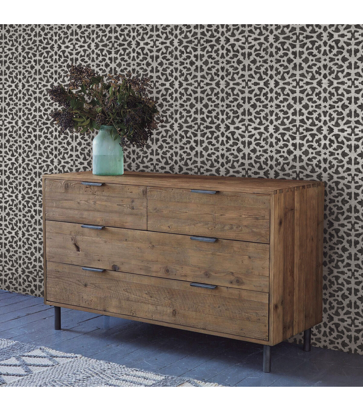 RoomMates Wallpaper Black & White Scroll Gate