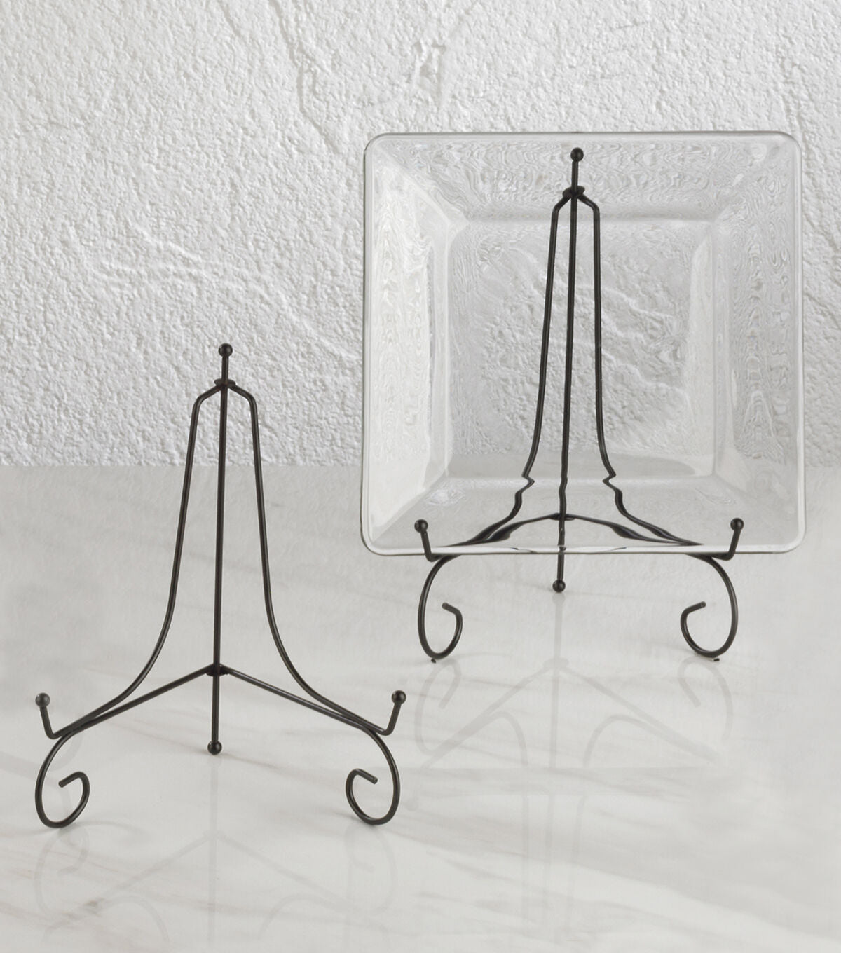 Elegantly showcase your favorite plate, bowl, book, artwork, signage and much more with the TRIPAR Metal Wire Stand - Black. This easel is made of metal and flaunts a black shade. You can easily fold it for convenient storage. It will also make an interesting addition to the gift basket of a friend.